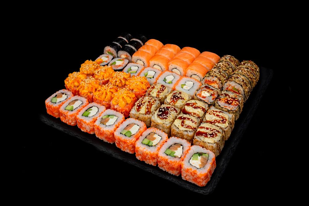 Акари ролл, Цунами ролл, Каоифорния с копчёным лососем, Филадельфия люкс ролл, Шанхай ролл, Калифорния запечёная, Япония ролл запечёный.