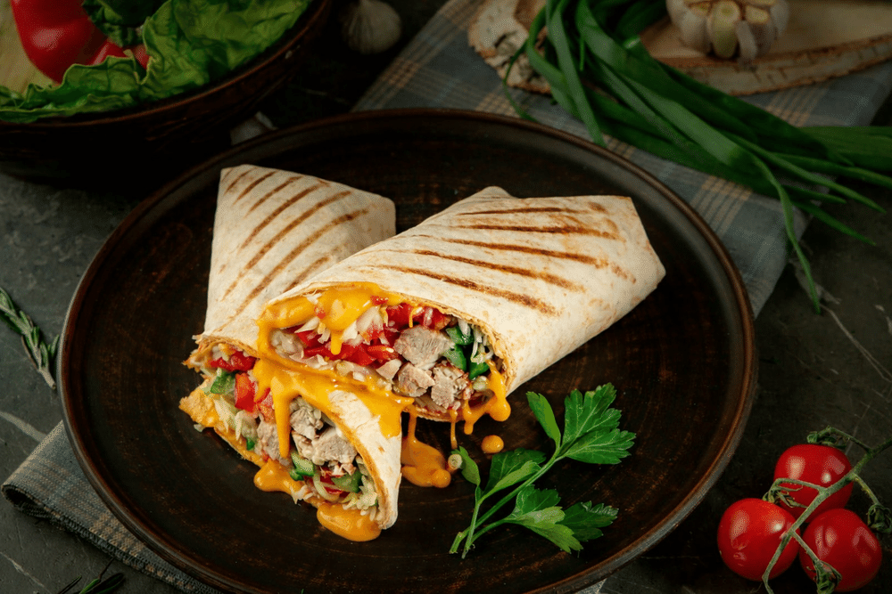 Аппетитная начинка из сочной курицы, хрустящей капусты, свежих ломтиков огурца и сладкого томата, дополненная нежным мраморным сыром и насыщенным чеддером. Всё завернуто в мягкий лаваш.