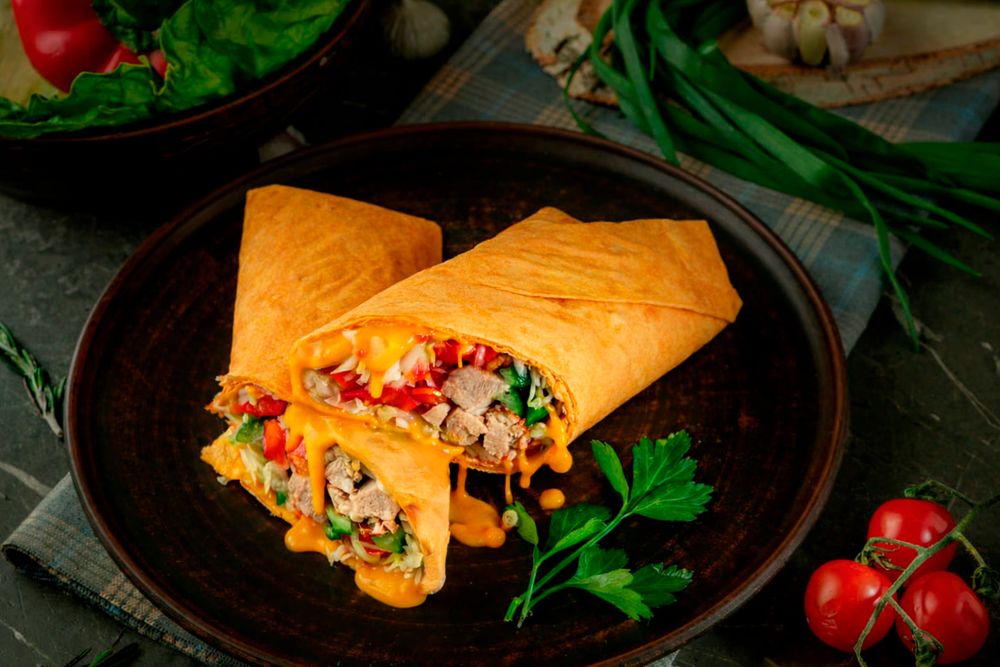 Аппетитная начинка из сочной курицы, хрустящей капусты, свежих ломтиков огурца и сладкого томата, дополненная нежным мраморным сыром и насыщенным чеддером. Всё завернуто в мягкий сырный лаваш.
